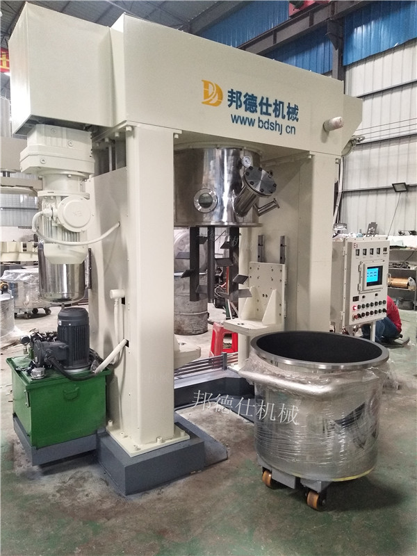 龍門架式行星動(dòng)力混合機(jī)/多功能行星攪拌機(jī)是一種無(wú)死點(diǎn)的混合、攪拌、分散設(shè)備。此設(shè)備集行星機(jī)、強(qiáng)力分散機(jī)功能于一體,采用獨(dú)特?cái)嚢铏C(jī)構(gòu),下料桶固定不動(dòng);分散盤(pán)、攪拌槳實(shí)現(xiàn)既公轉(zhuǎn)又自轉(zhuǎn)的行星運(yùn)動(dòng),其速度可調(diào)頻變速。使物料作復(fù)雜運(yùn)動(dòng),受到強(qiáng)烈的剪切、攪拌和搓合,物料得以充分混合和破碎。在釜內(nèi)設(shè)計(jì)了自動(dòng)刮壁、刮底結(jié)構(gòu),將粘附著釜壁上的物料刮下繼續(xù)混合,不會(huì)出現(xiàn)混合死角。設(shè)備密封獨(dú)特,可加壓或抽真空去氣泡等。您可以提出您所需要的處理量、設(shè)備形式、規(guī)格要求或您需要加工的物料的性質(zhì),邦德仕的銷售工程師會(huì)提供讓您滿意的方案。